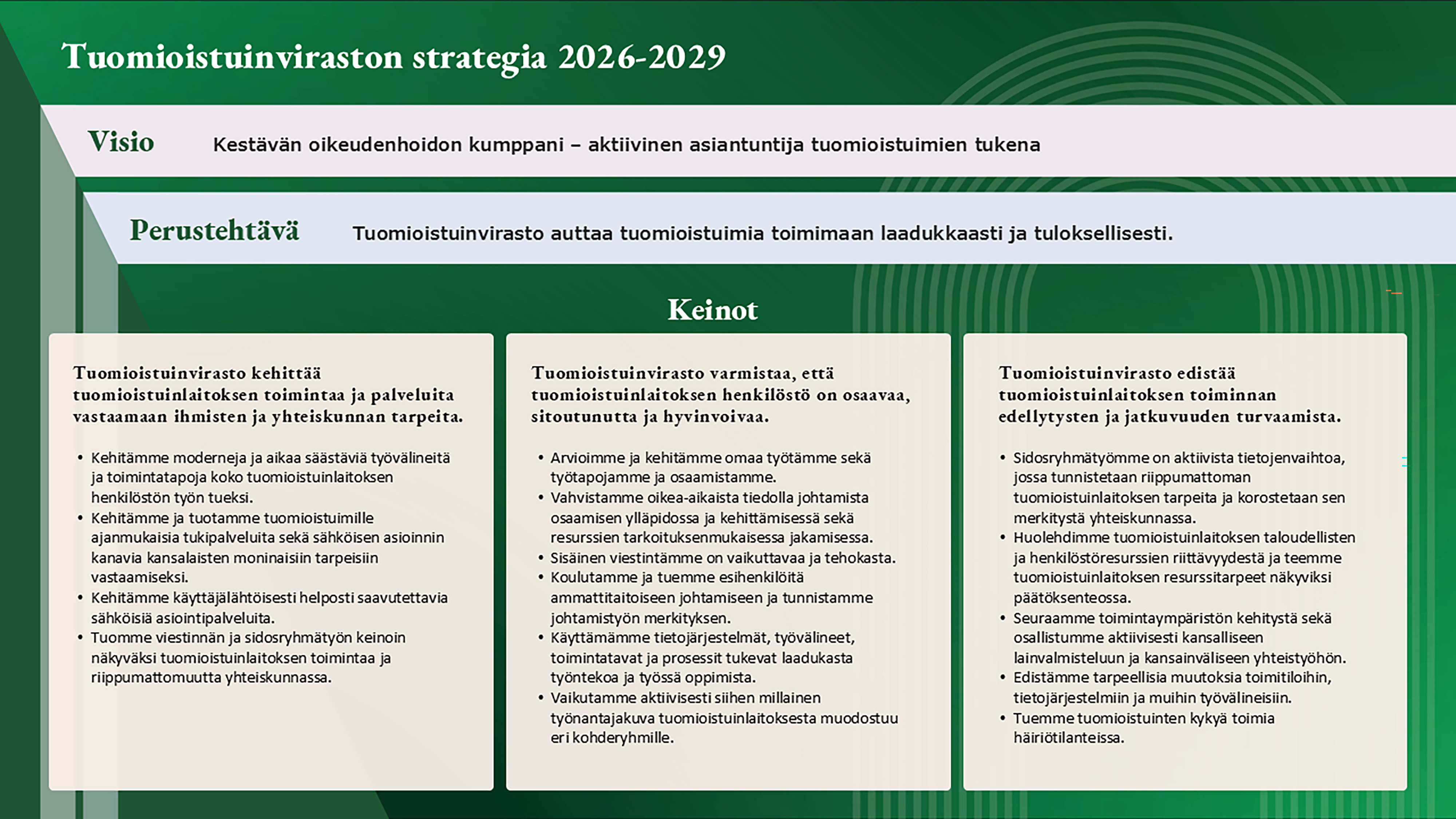 Tuomioistuinviraston strategia 2026-2029Avautuu uuteen välilehteen
